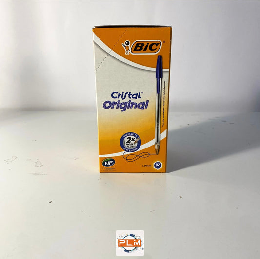 50 Penne a sfera Bic Cristal classica punta 1.0mm per un tratto di scrittura medio - colore blu